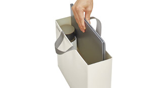 オフィスにもリビングにもなじむ柔らかいカラーリング。取っ手は本体よりも濃い色でアクセントになります。