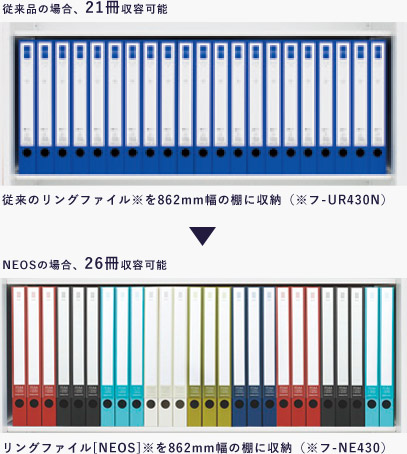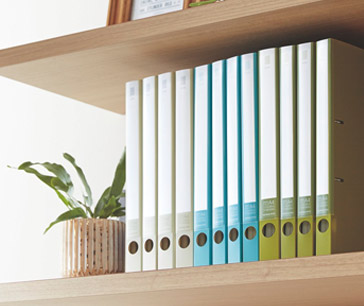 ※ファイルの収容枚数の表示は、PPC用紙64g/㎡を使用し、収容寸法1mmあたり10枚で算出しております。