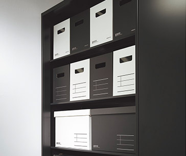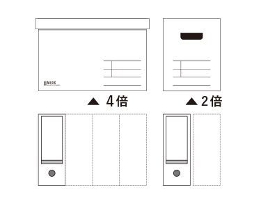 ファイルボックスの倍数(モジュール)で設計されているので、オフィスの収納庫に