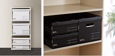 ご家庭でも使いやすいサイズで設計されているので、棚内や棚上、カラーボックスなどにきれいに収めることができます。