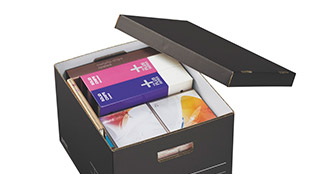文房具などのストック、子供の作品や旅行のパンフレットの保存に。積み重ね可能なフタ付き。