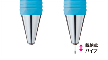 丈夫な金属ペン先ペン先は、安定した書き心地を実現する金属製。 先端は、安心のパイプ収納式です。