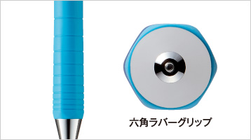 六角ラバーグリップグリップ先端部は、しっかり握れる六角形。 グリップ後ろ側はゆったり持てる円形で、