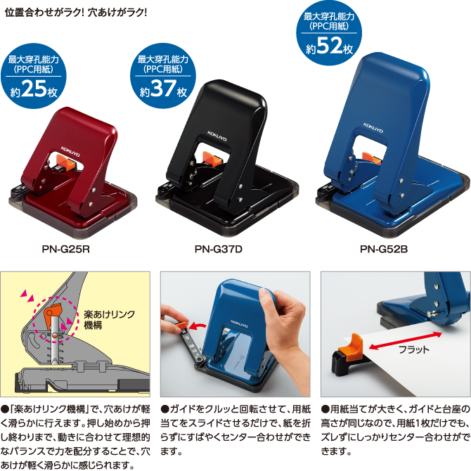 - 最大穿孔能力/PPC用紙約25枚(PN-G25)、PPC用紙約37枚(PN-G37)、PPC用紙約52枚(PN-G52)
