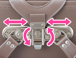 大きな力がかかると外れるあんしん構造と、指で押しやすく、らくらく改変できるやわらか機能を搭載したナスカンを両サイドに採用しました