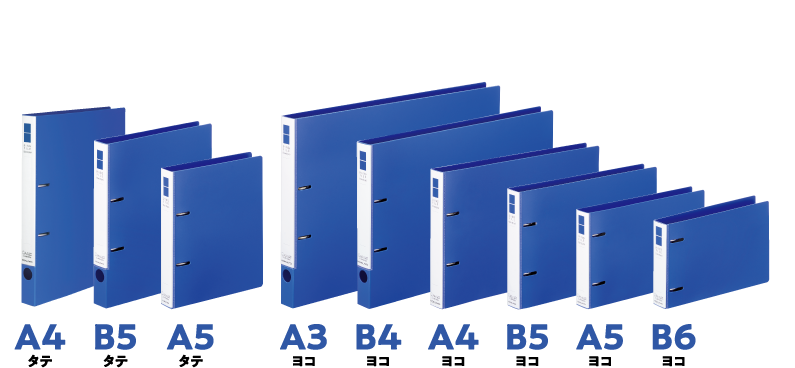 A3〜B6サイズを網羅! ※不透明表紙 中リングのラインアップ。