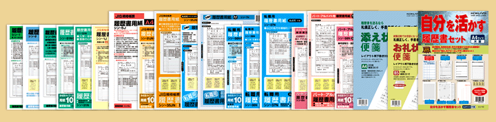 転職用、アルバイト・パート用、といった用途別、サイズ別、そして多枚数入ったものや、履歴書の書き方の手引きの入ったものまで。