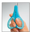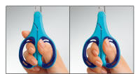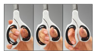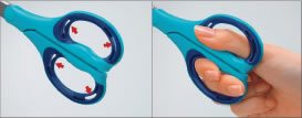指への負担が少なく、手にしっくりなじむエアークッション構造のハンドルを採用。ユニバーサルデザインのハサミです。