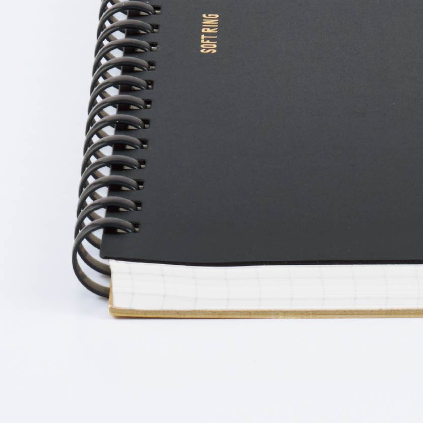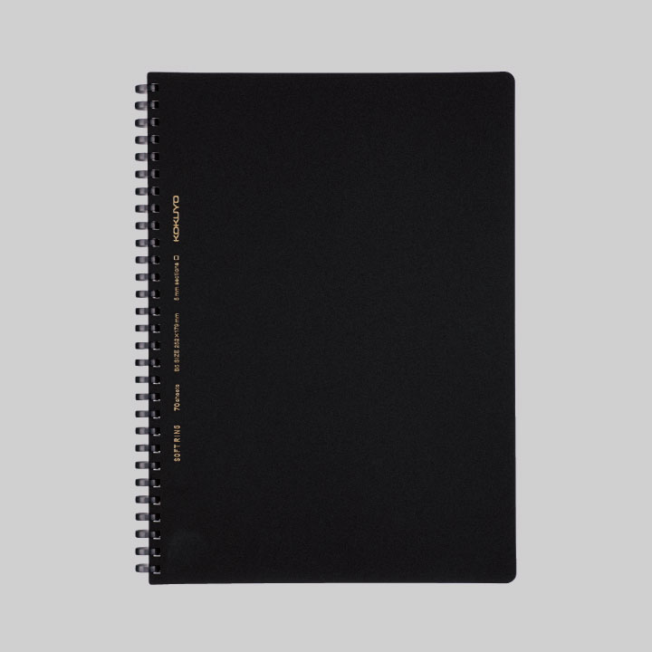 ●罫内容/5mm方眼罫 ●中紙/上質紙(厚口) ●表紙/表:PP、裏:板紙 ●リング/オレフィン系樹脂