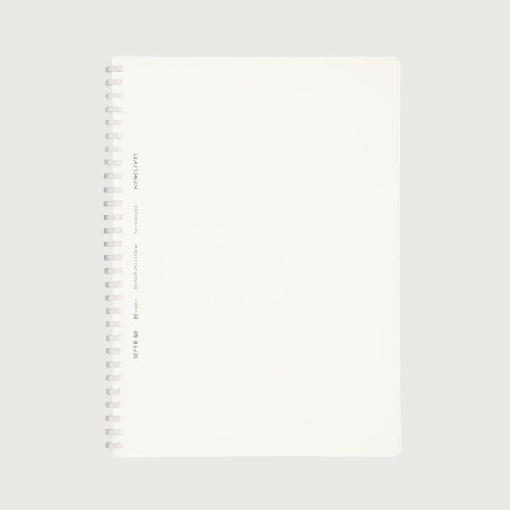 ●罫内容/5mm方眼ドット罫 ●中紙/上質紙 ●表紙/透明PP ●リング/オレフィン系樹脂