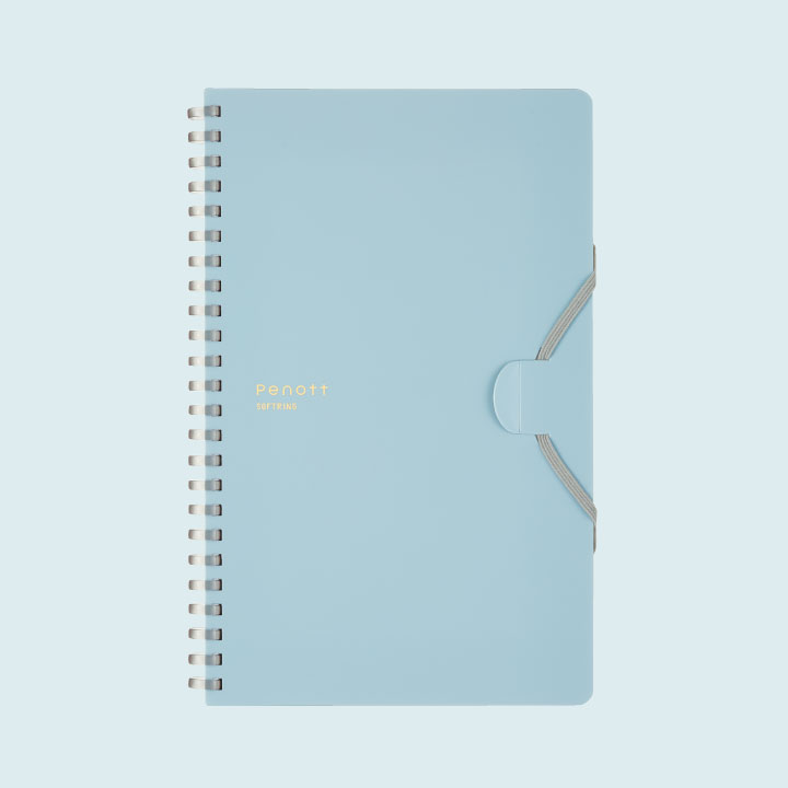 ペンをセットしてスマートに持ち運べる、スリムサイズのソフトリングノート。