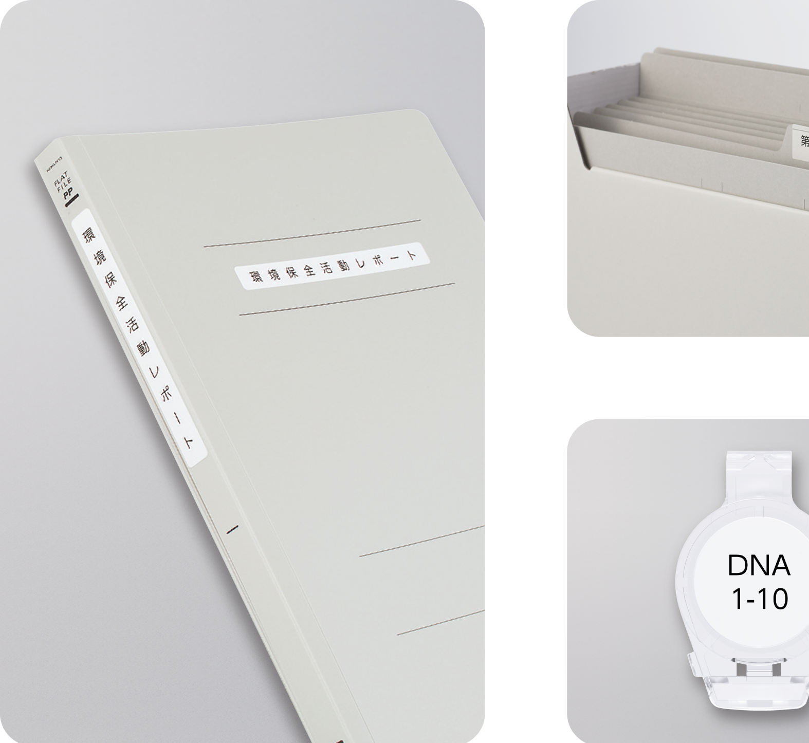 パソコンでラベルを編集し、タイトルブレーンクロスで印刷できます。