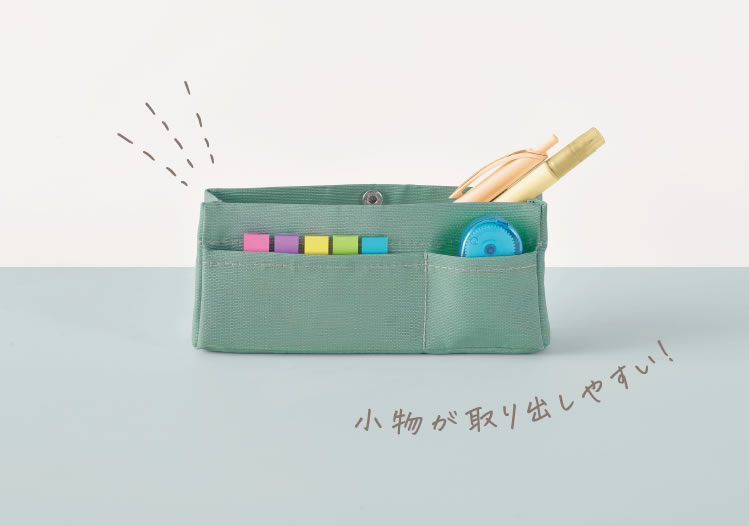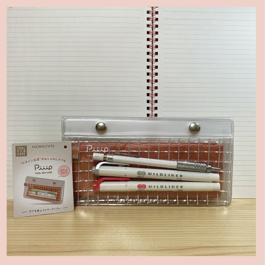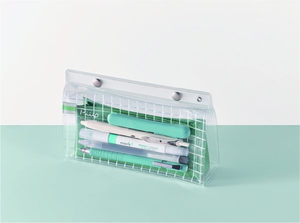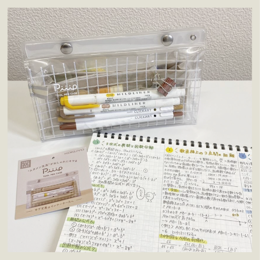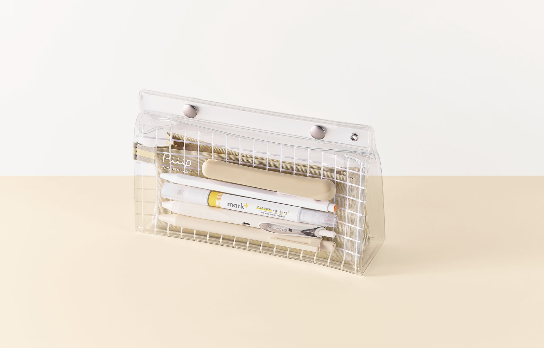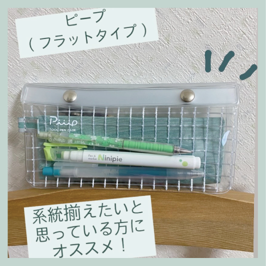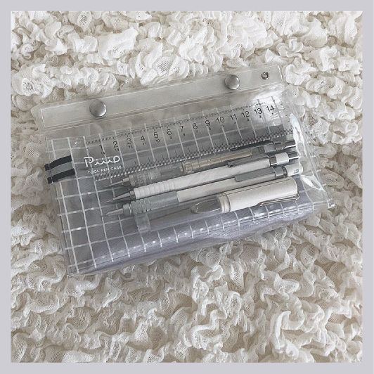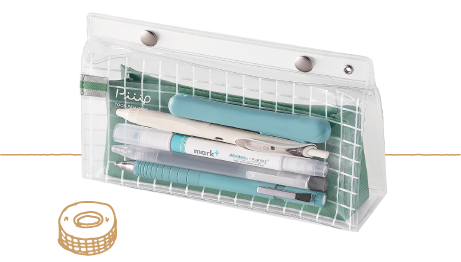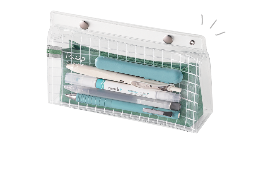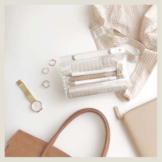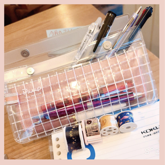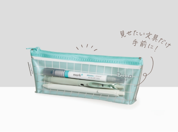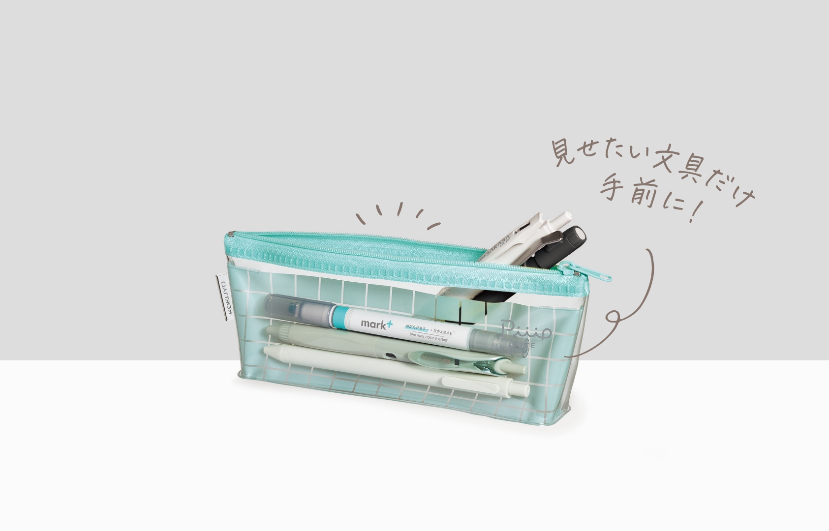暗記ペンなどの実用的な文具は、インナーケースの中 or 仕切りの向こうに隠すと、ワントーンコーデが簡単につくれる!