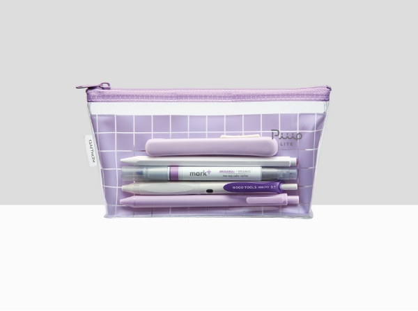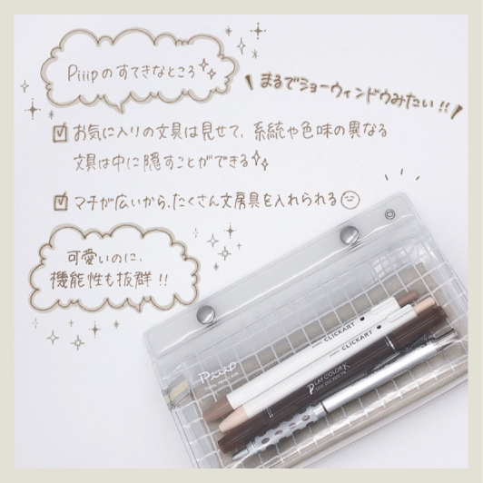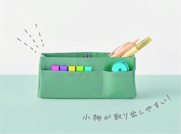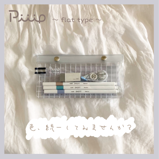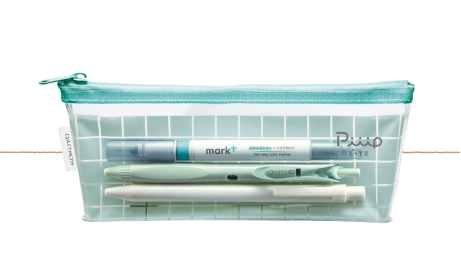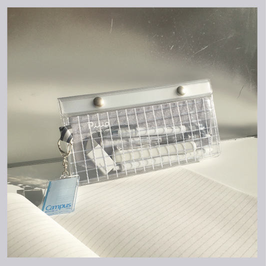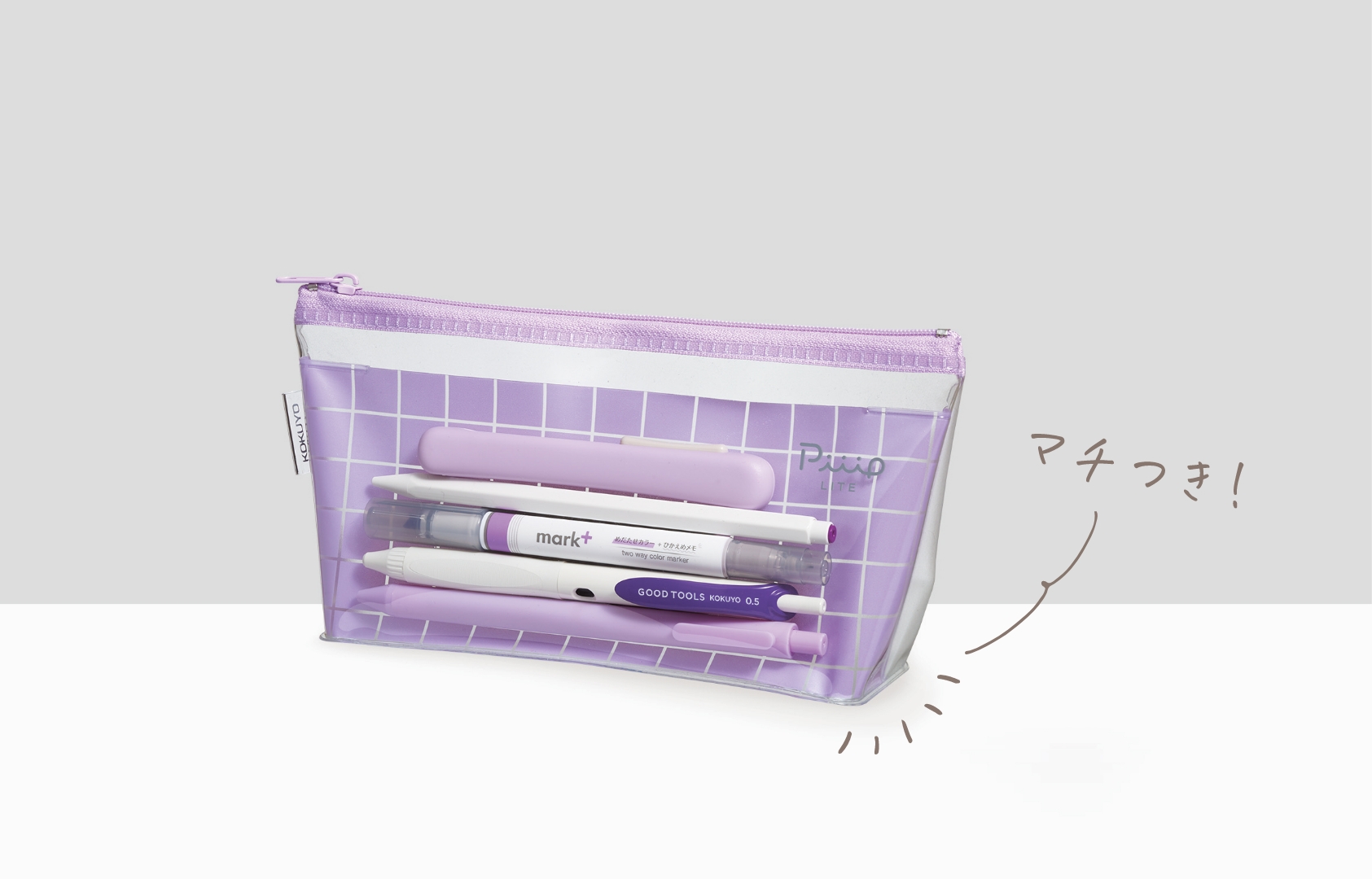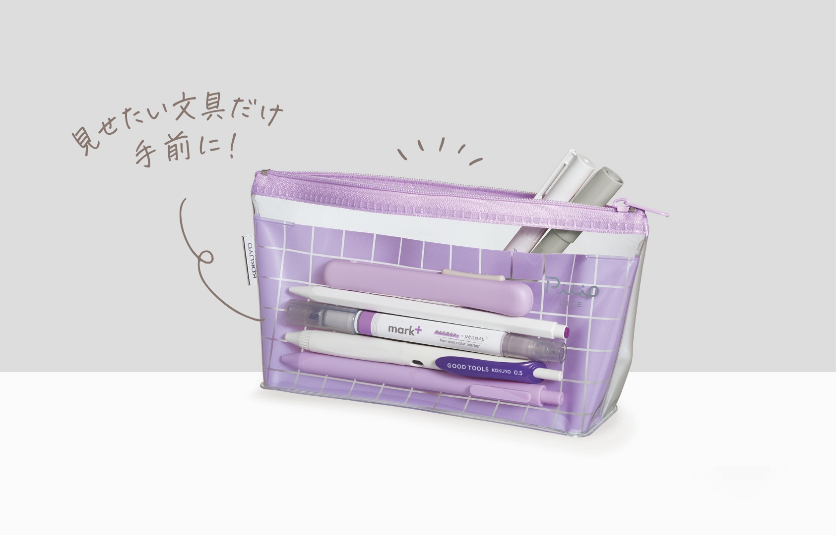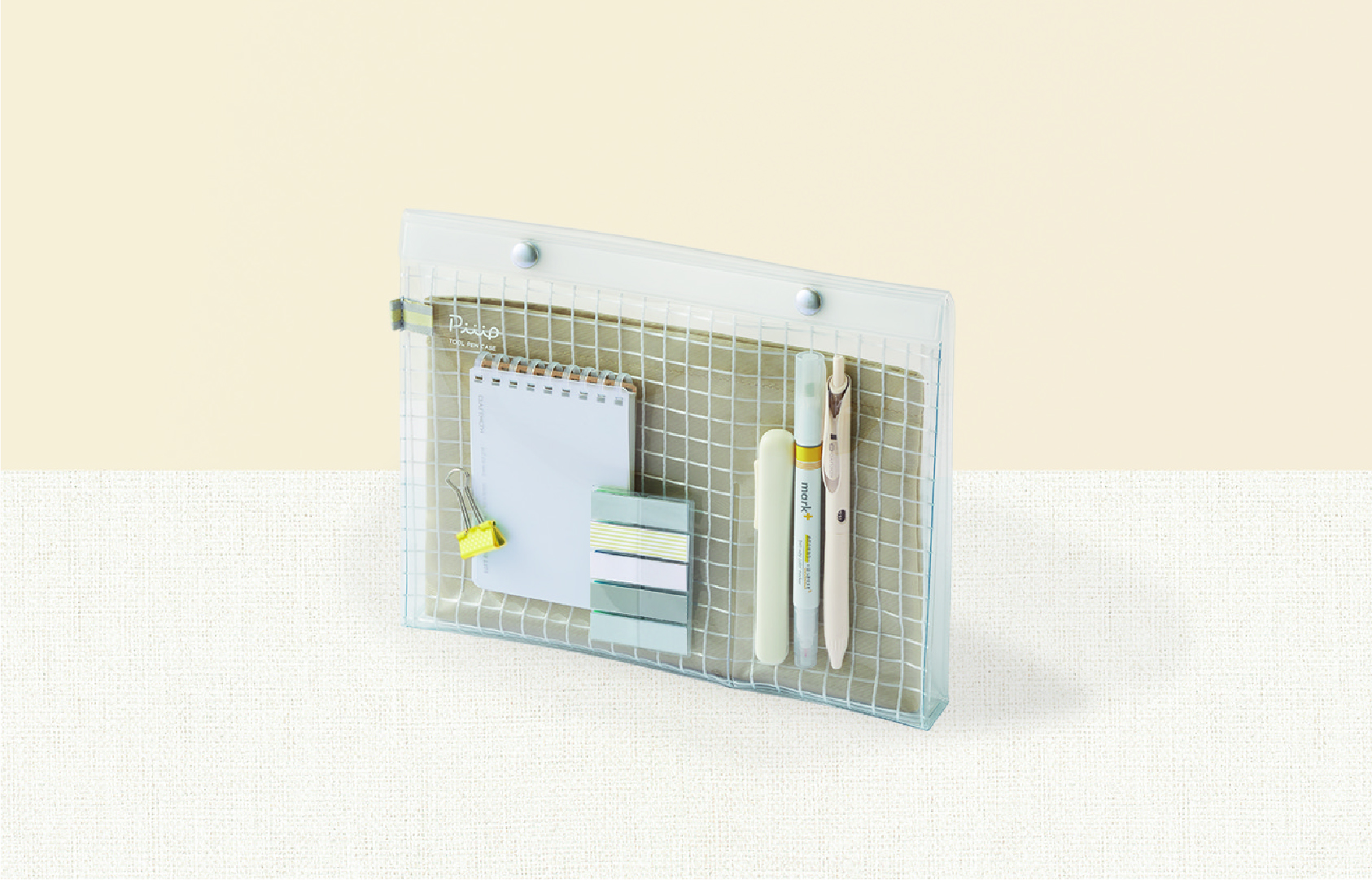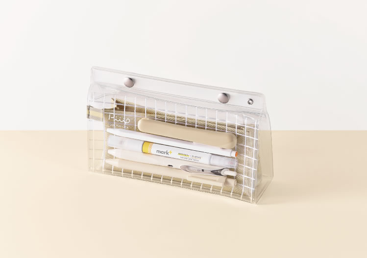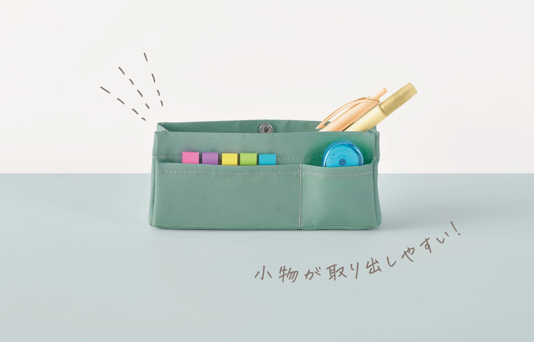 暗記ペンなどの実用的な文具は、インナーケースの中 or 仕切りの向こうに隠すと、ワントーンコーデが簡単につくれる!