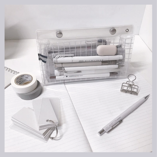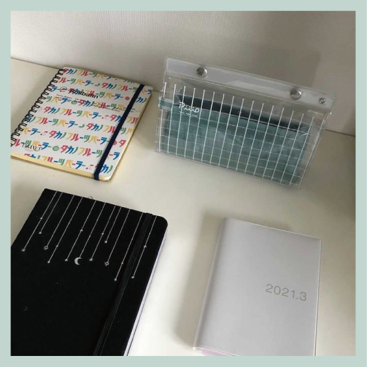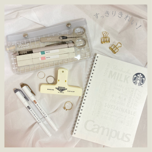 お気に入りのスタメン文具をディスプレイ。人気のワントーンコーデが簡単につくれるよ。