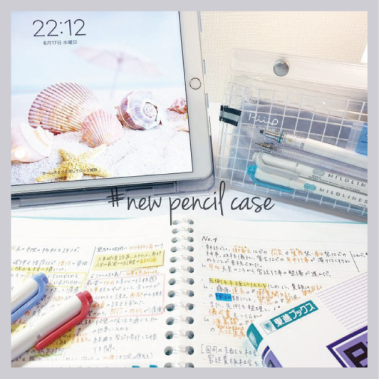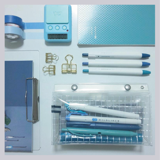 青系統に揃えるために、どうしてもオレンジや赤系の蛍光ペンなどを筆箱にいれるのをやめてしまってました。。でもこれで実用性重視の文具たちも持ち歩けます…!笑 (蒼やぎさん)