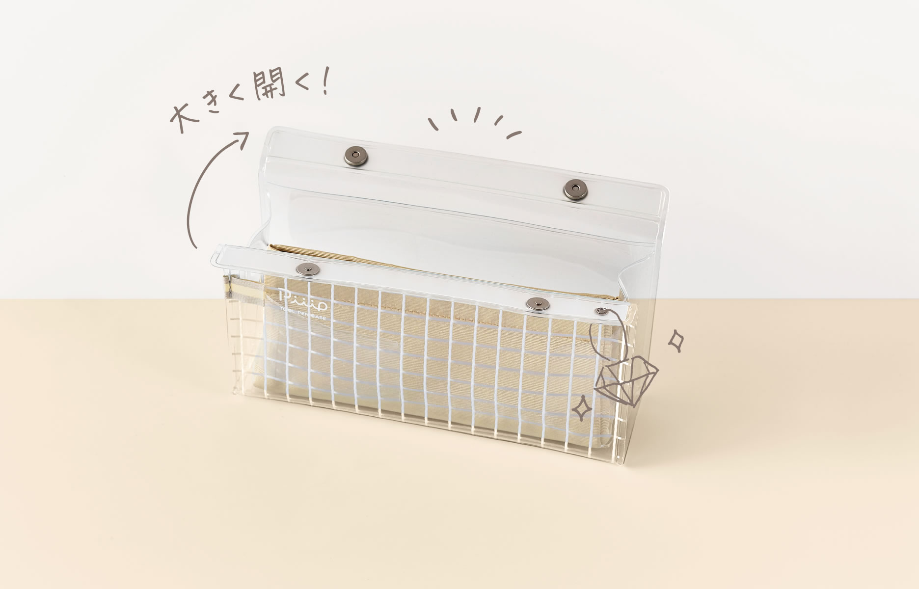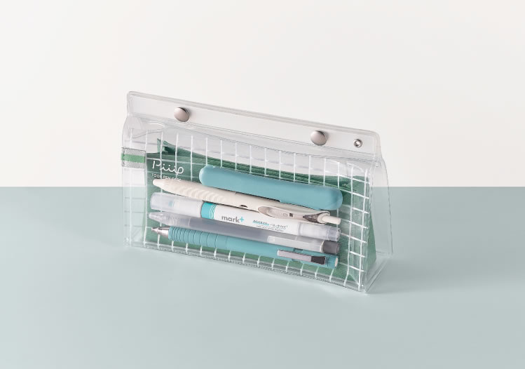 ●ペン収容本数/約3本+小物ポケット×2●材質/透明ケース:PVC、インナーケース:ポリエステル