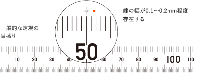 本当の定規とは、 一般的な定規のように「太さがある線」ではなく、 幾何学の定義でいうところの線=「太さがない線」で目盛りを表現しました。
