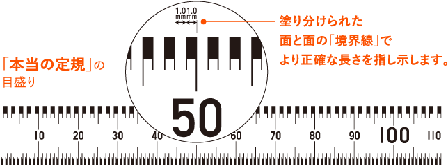 等間隔に並べた面と面との間に生まれる「境界線」で位置を示し、 より正確な長さを測ることができる定規です。