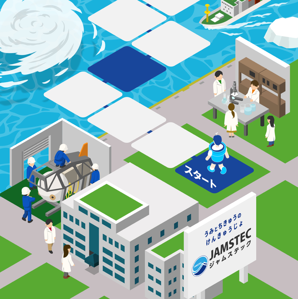 お子さんたちがマスを進める際には、背景のイラストにもぜひ注目してもらいたいですね。コクヨさんから初めに相談をいただいた際に、たぶん深海探査機といったアイテムをやる気ペンに登場させたいというお話だったんじゃないかなと思ったのですが、せっかく小学生のみなさんに科学技術を紹介できるなら、JAMSTECと一緒に未知の海に出かけて探検するようなストーリーにしたい!とわがままを言わせてもらいました(笑)