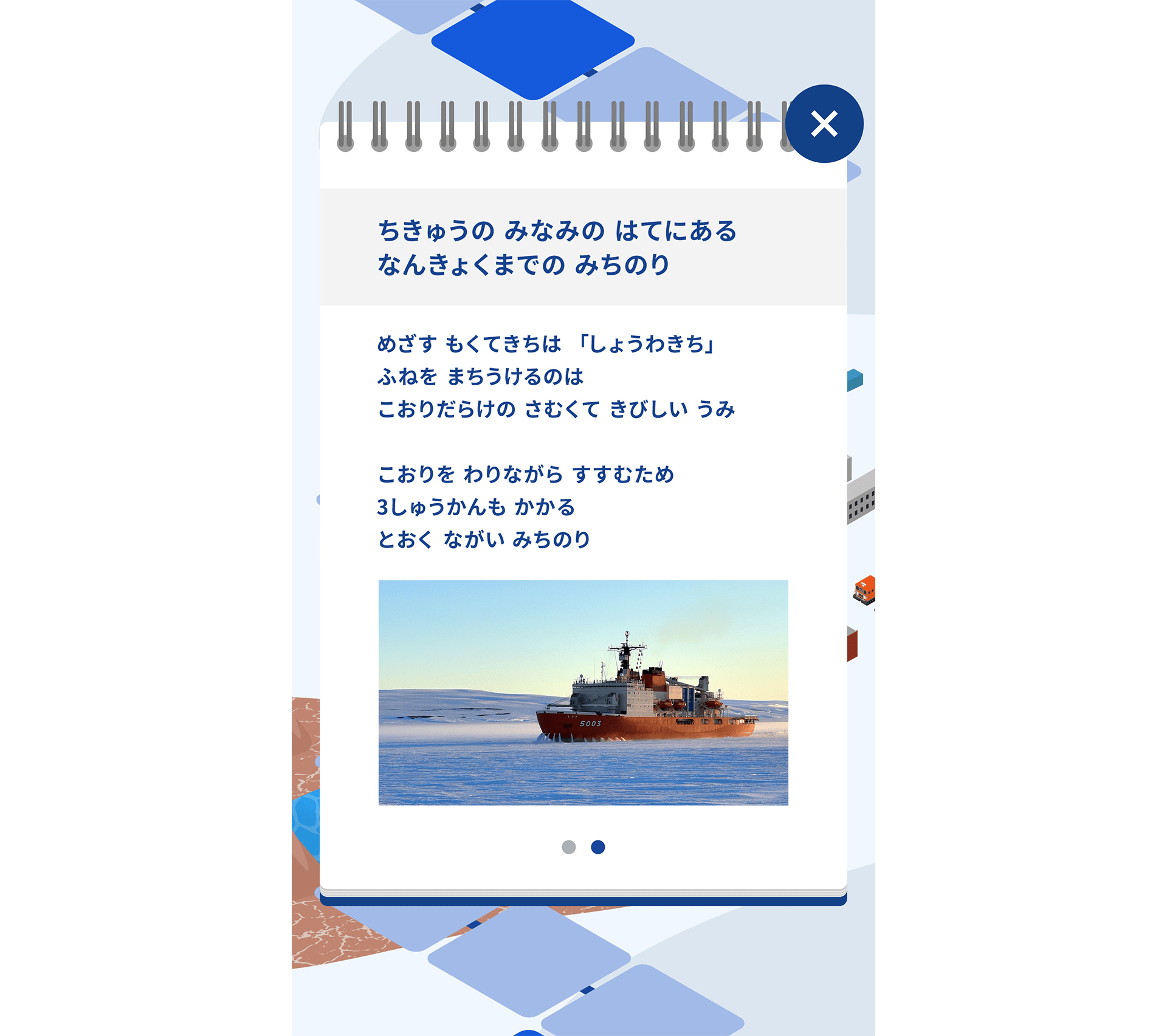 なんきょくののふしぎの庭では、やる気アイテムのほかに、特別なレポートを読むことができる。レポートでは、観測隊のことや南極での研究について知ることができるぞ!
